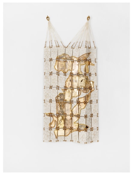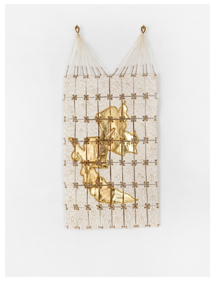 The use of gold and obfuscated symbolism is only one of the ways in which Imbeau is examining worth with these works. By combining historically high-value materials such as porcelain and gold, with a very utilitarian one such as twine, she is suggesting there's a level of equality between these materials, and that these opposites in a sense have a need for each other within the context of the whole. She also brings a sense of added value to her mundane materials through the immense amount of time she gives each piece by doing all the work by hand.