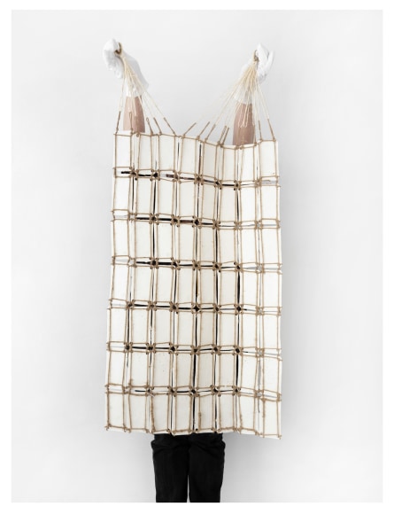 This simple yet multi-step process results in a work that is the culmination of years during which the artist Stephanie Imbeau explores methods of combining her love of sewing with ceramics, as well as her enduring preoccupation with assertion of physical presence through the combination of many small parts.