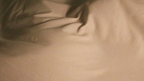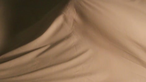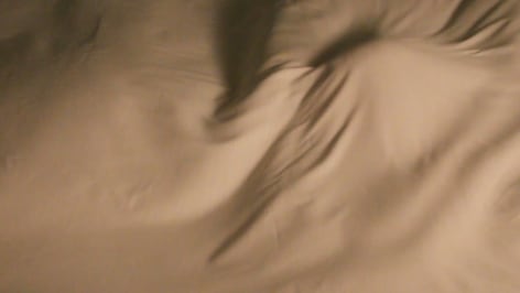 A suspended bed sheet both reflects and hides the activity below in an hour-long slow-motion film.
