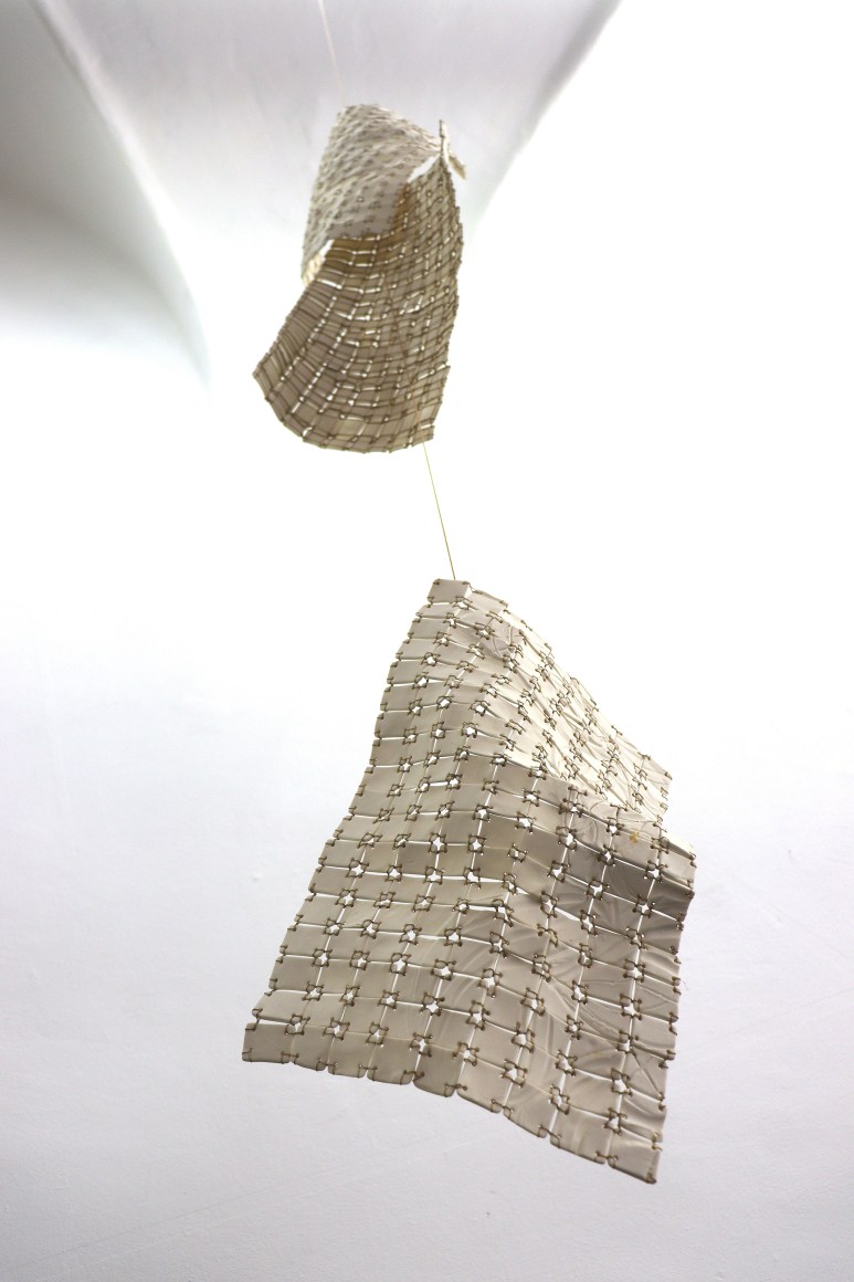 Porcelain and Metallic Thread, Synthetic Rope used for Installation each ca 32 x 23 x .3 cm