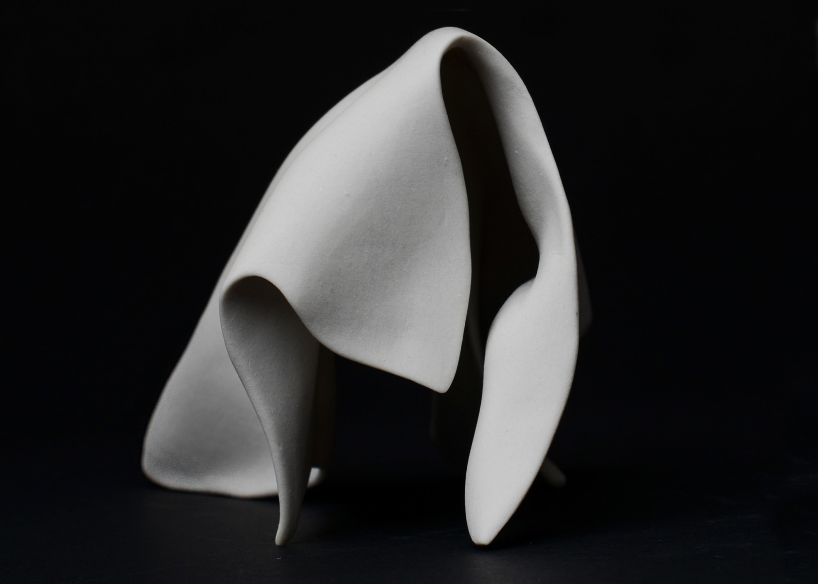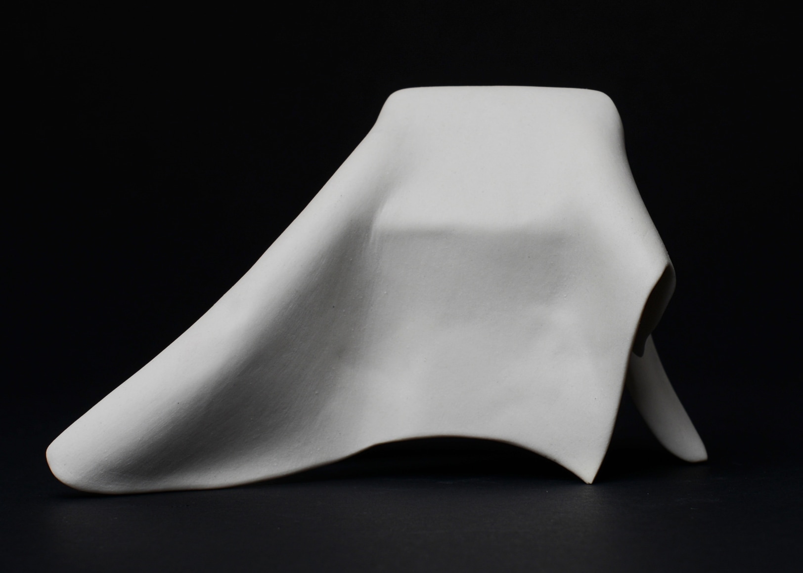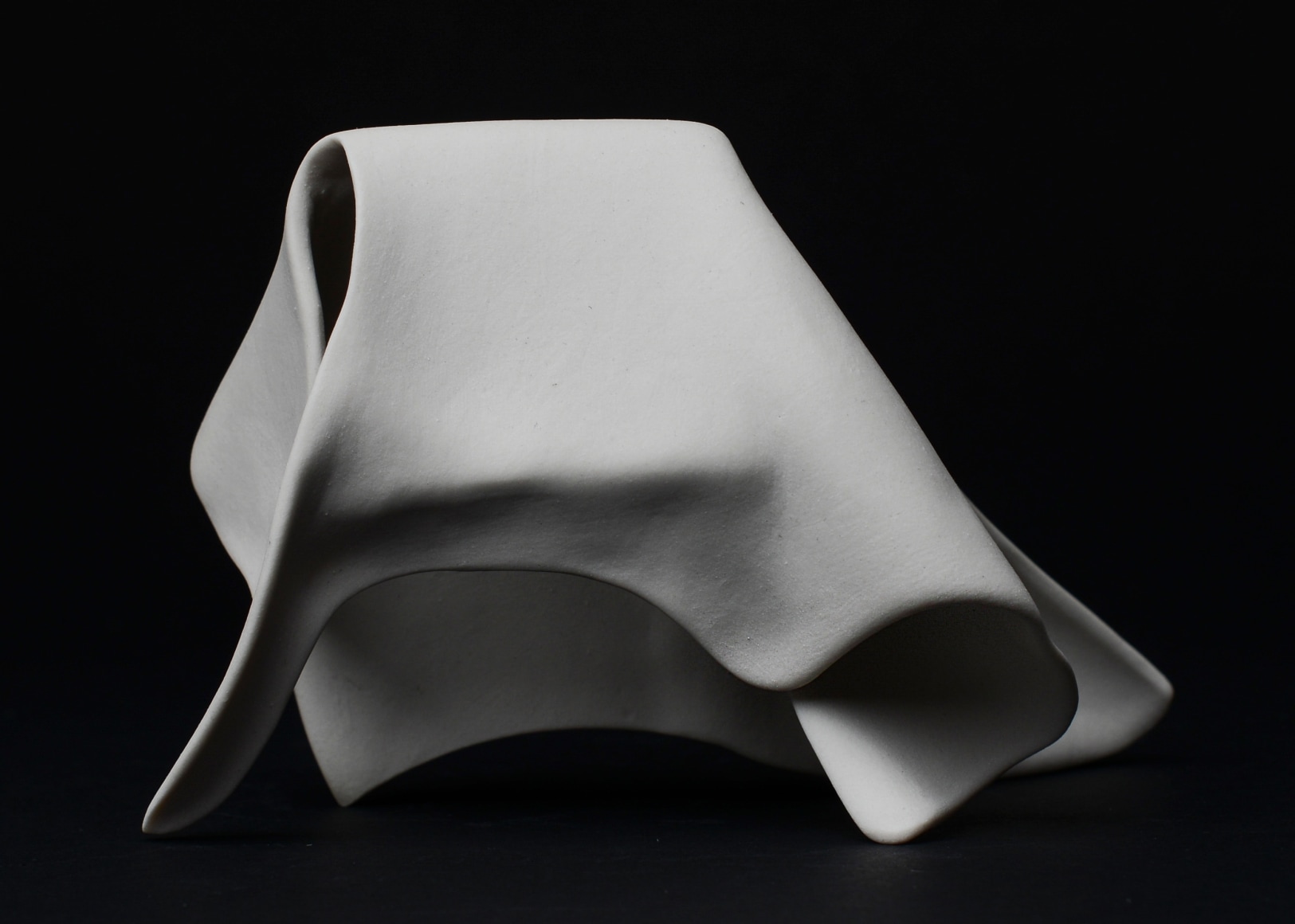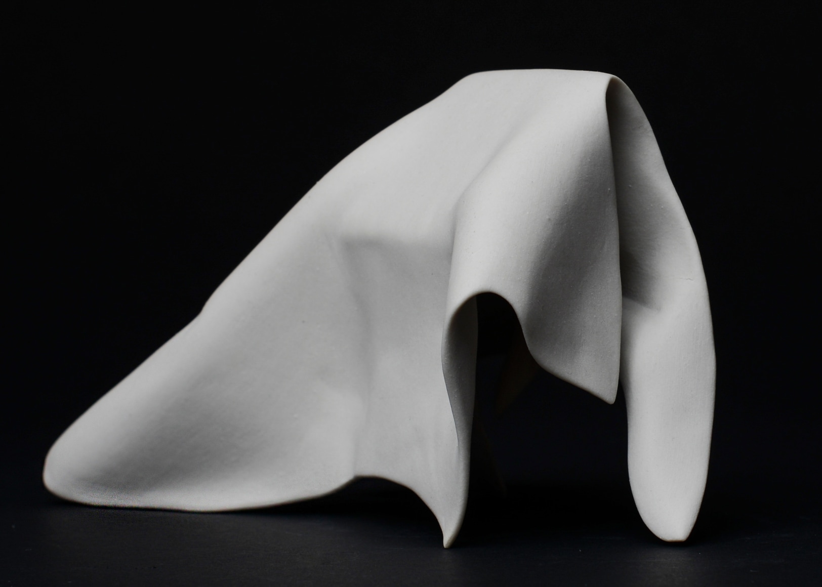 Sculpture series made from thin slabs of fragile wet clay. Once fired, these abstracted forms that are both draped and structural reflect the fragility of the individual and the necessary yet uncertain protection of home and shelter.