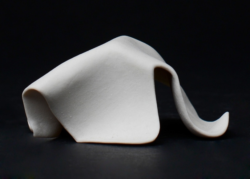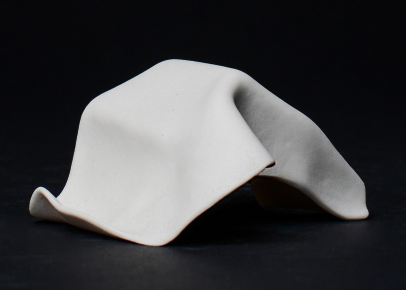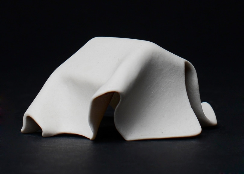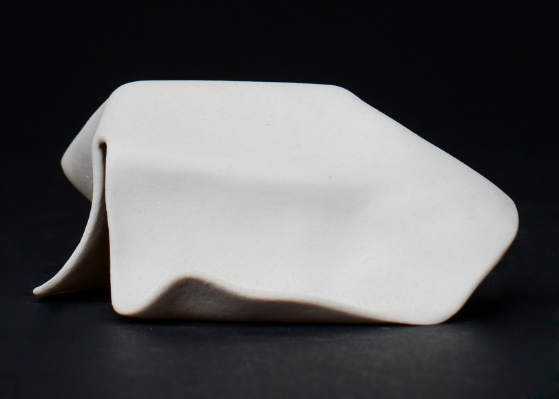 Sculpture series made from thin slabs of fragile wet clay. Once fired, these abstracted forms that are both draped and structural reflect the fragility of the individual and the necessary yet uncertain protection of home and shelter.