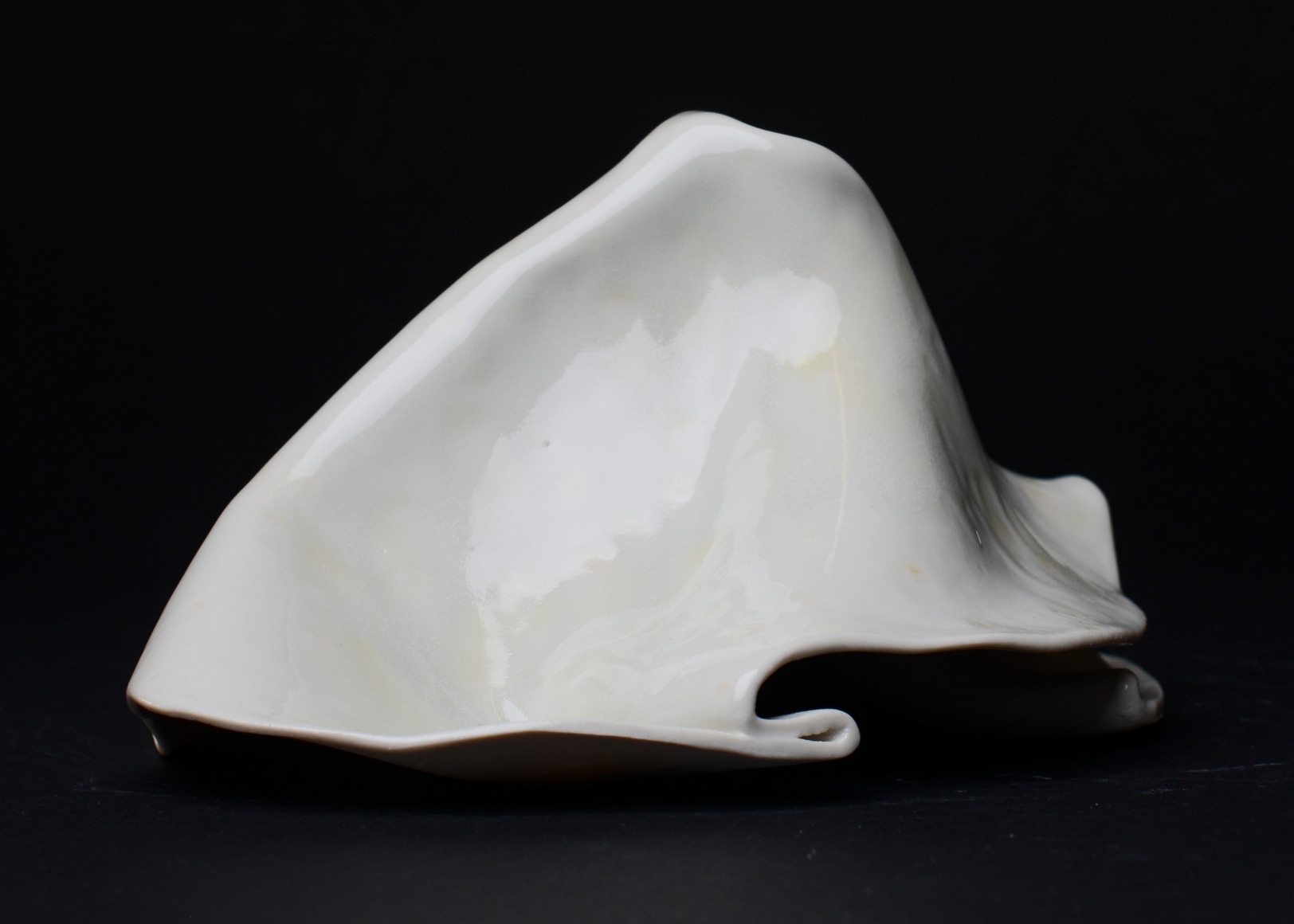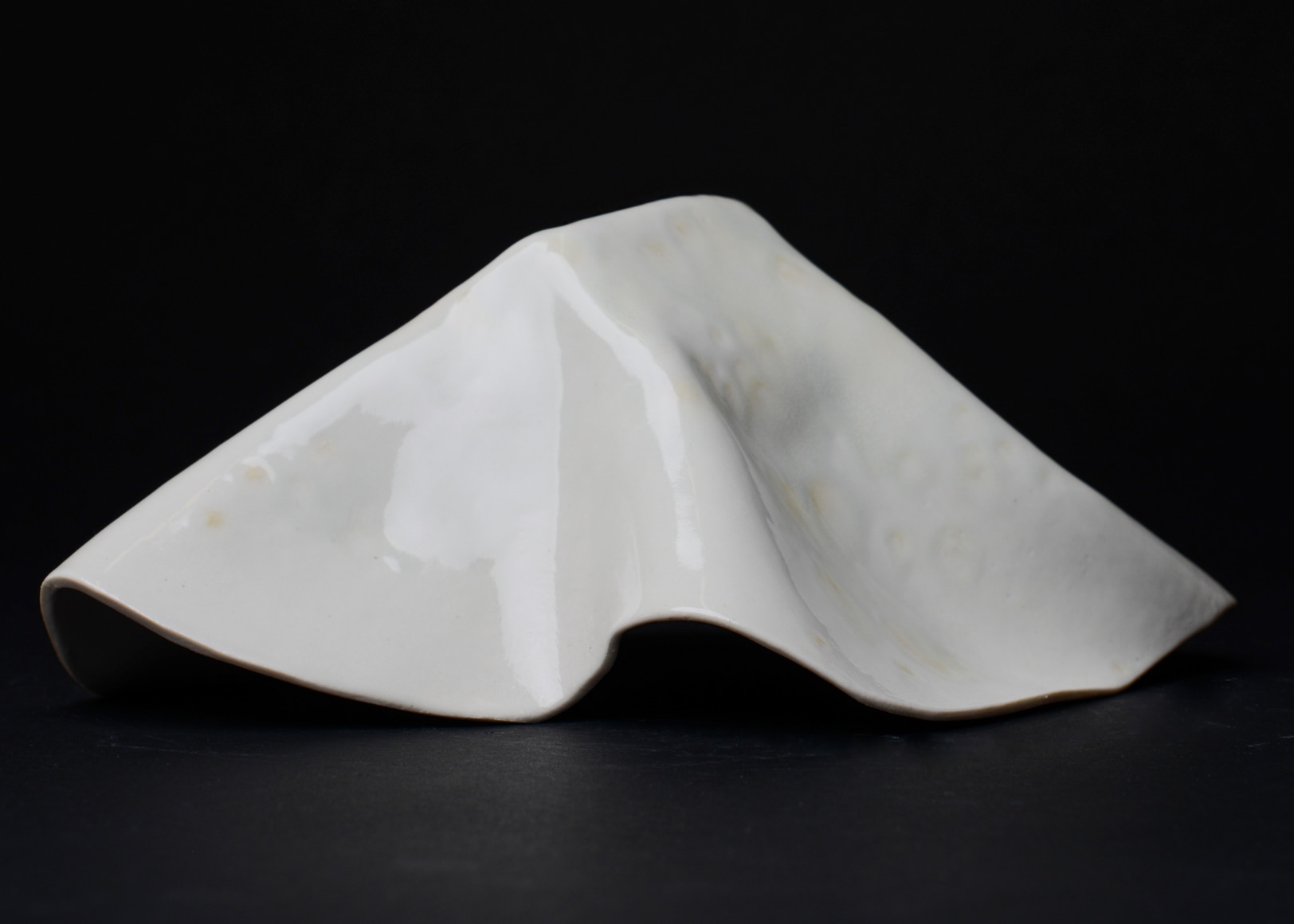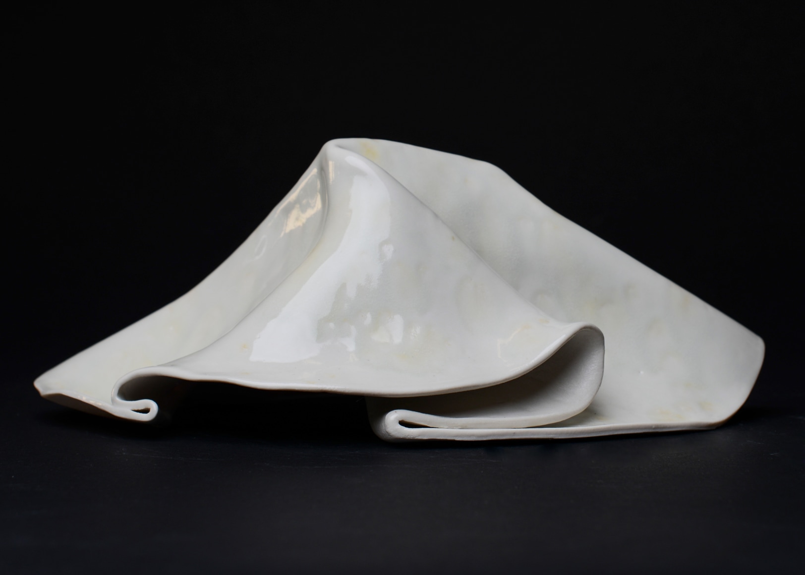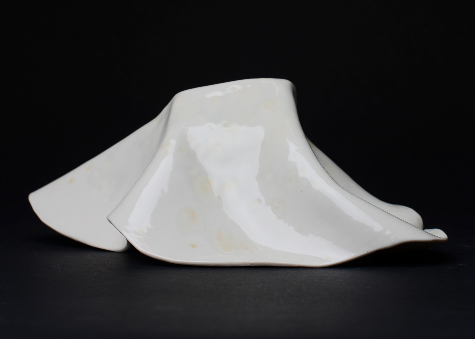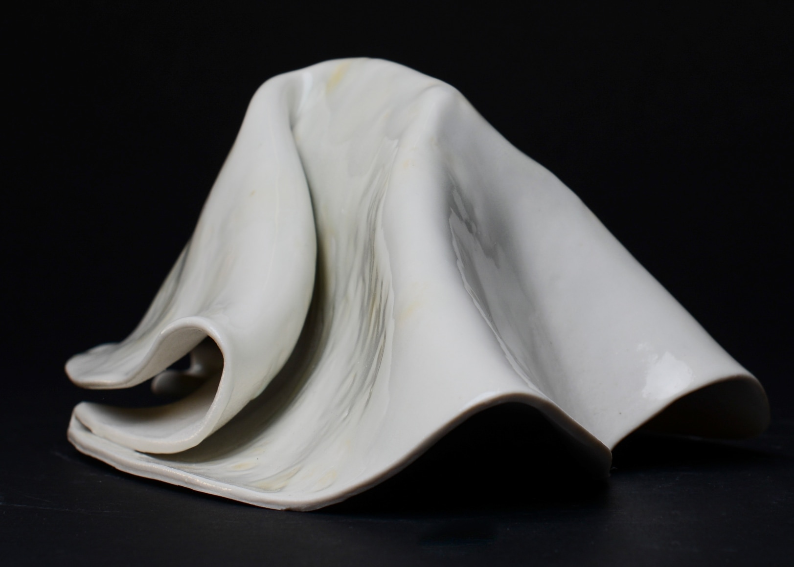 Sculpture series made from thin slabs of fragile wet clay. Once fired, these abstracted forms that are both draped and structural reflect the fragility of the individual and the necessary yet uncertain protection of home and shelter.