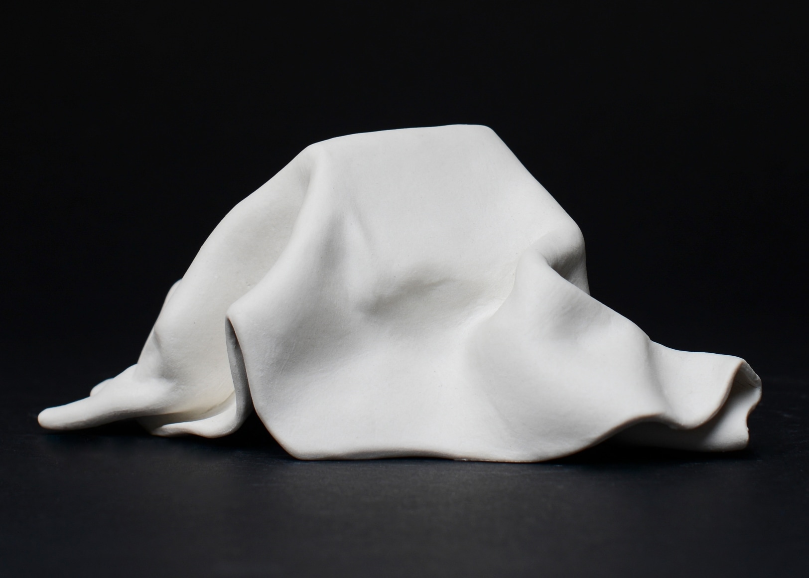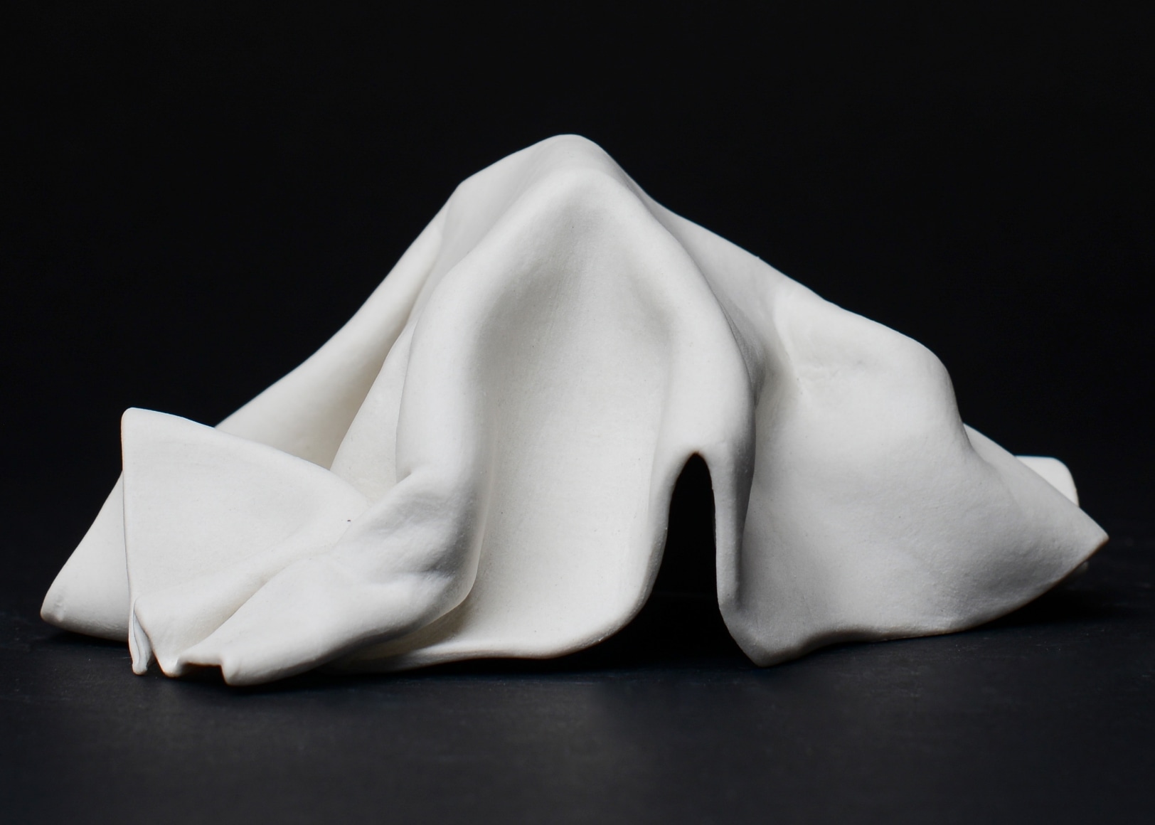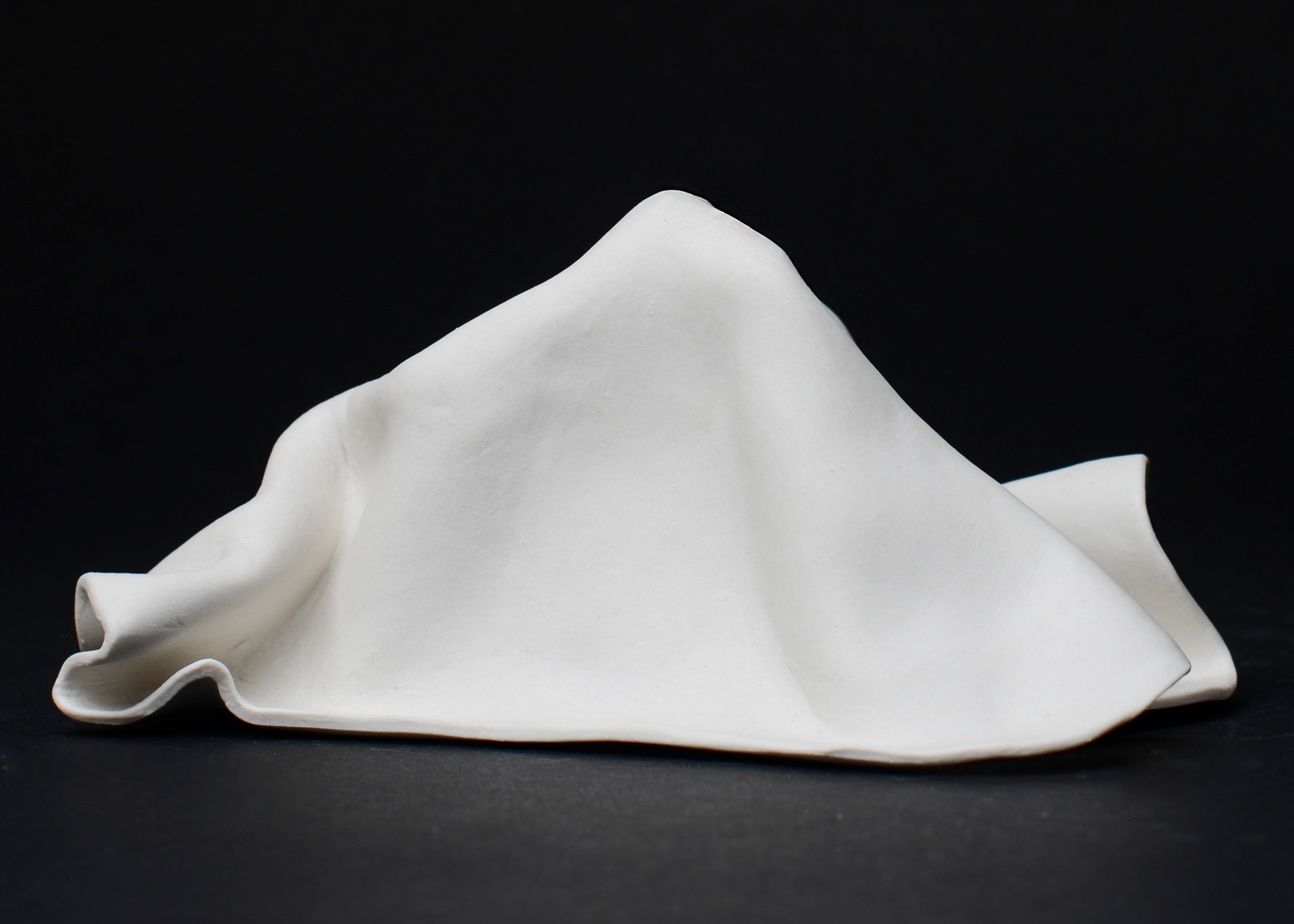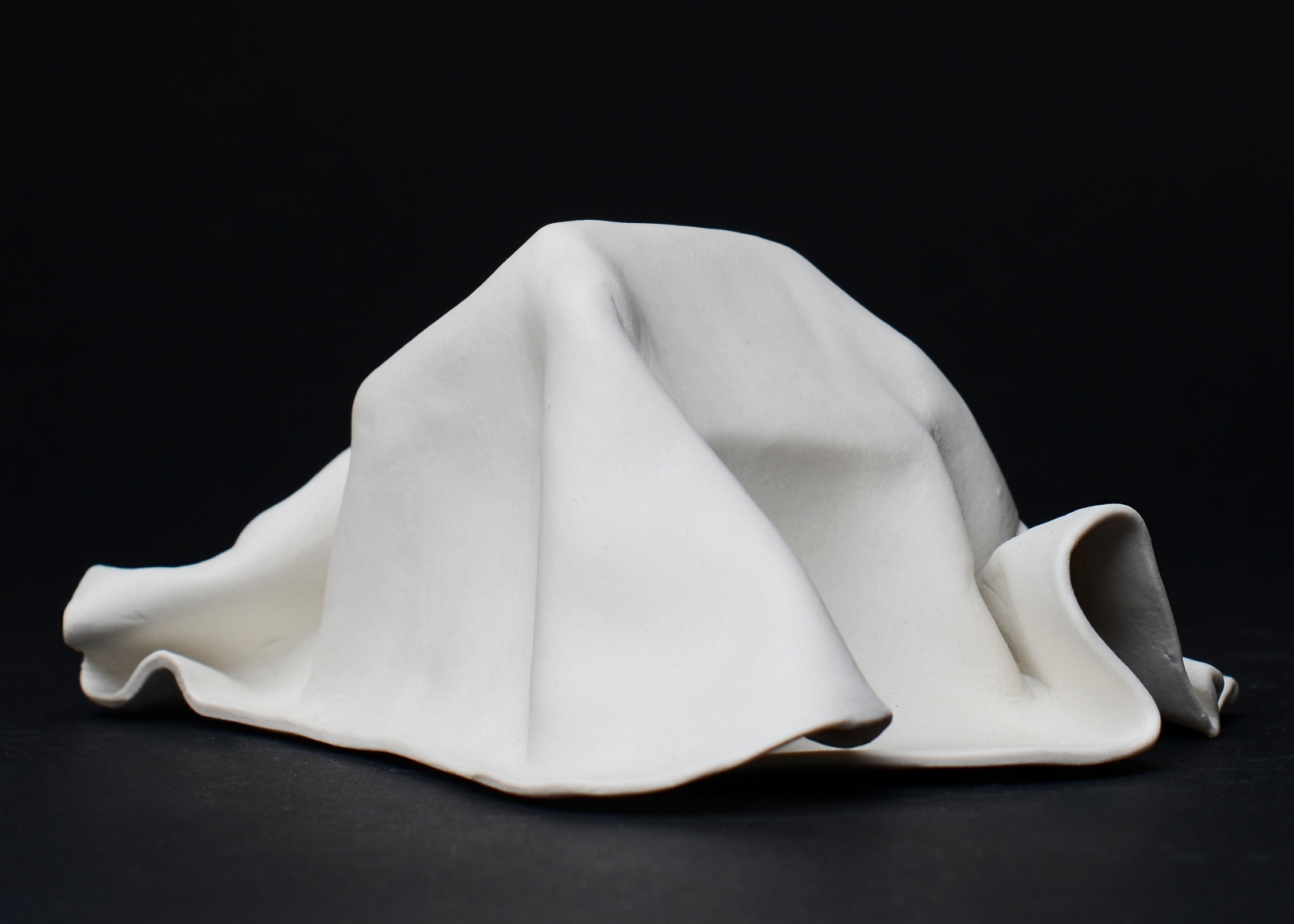Sculpture series made from thin slabs of fragile wet clay. Once fired, these abstracted forms that are both draped and structural reflect the fragility of the individual and the necessary yet uncertain protection of home and shelter.