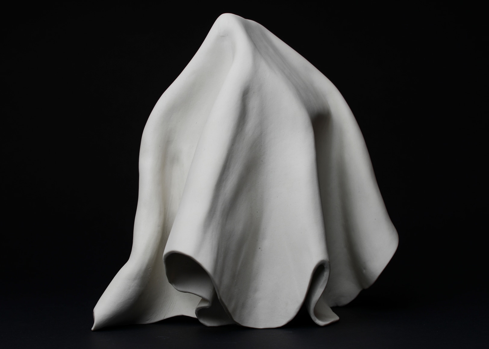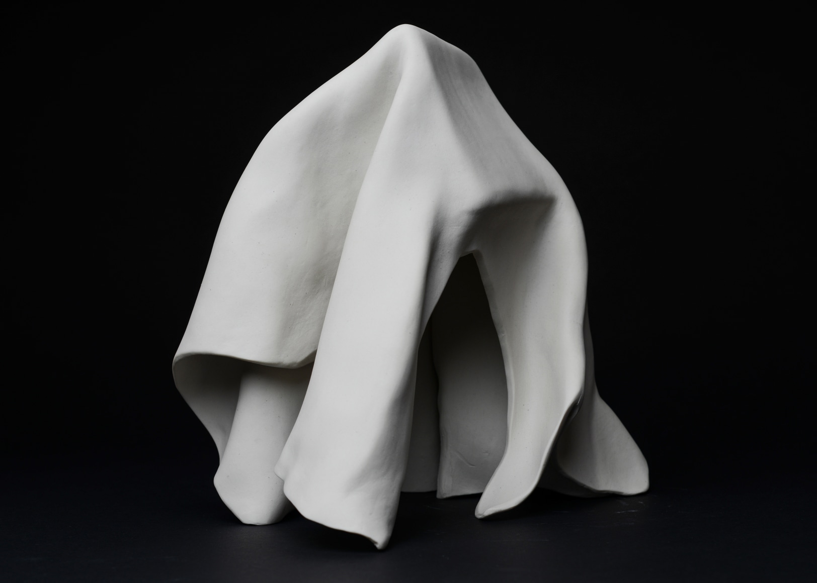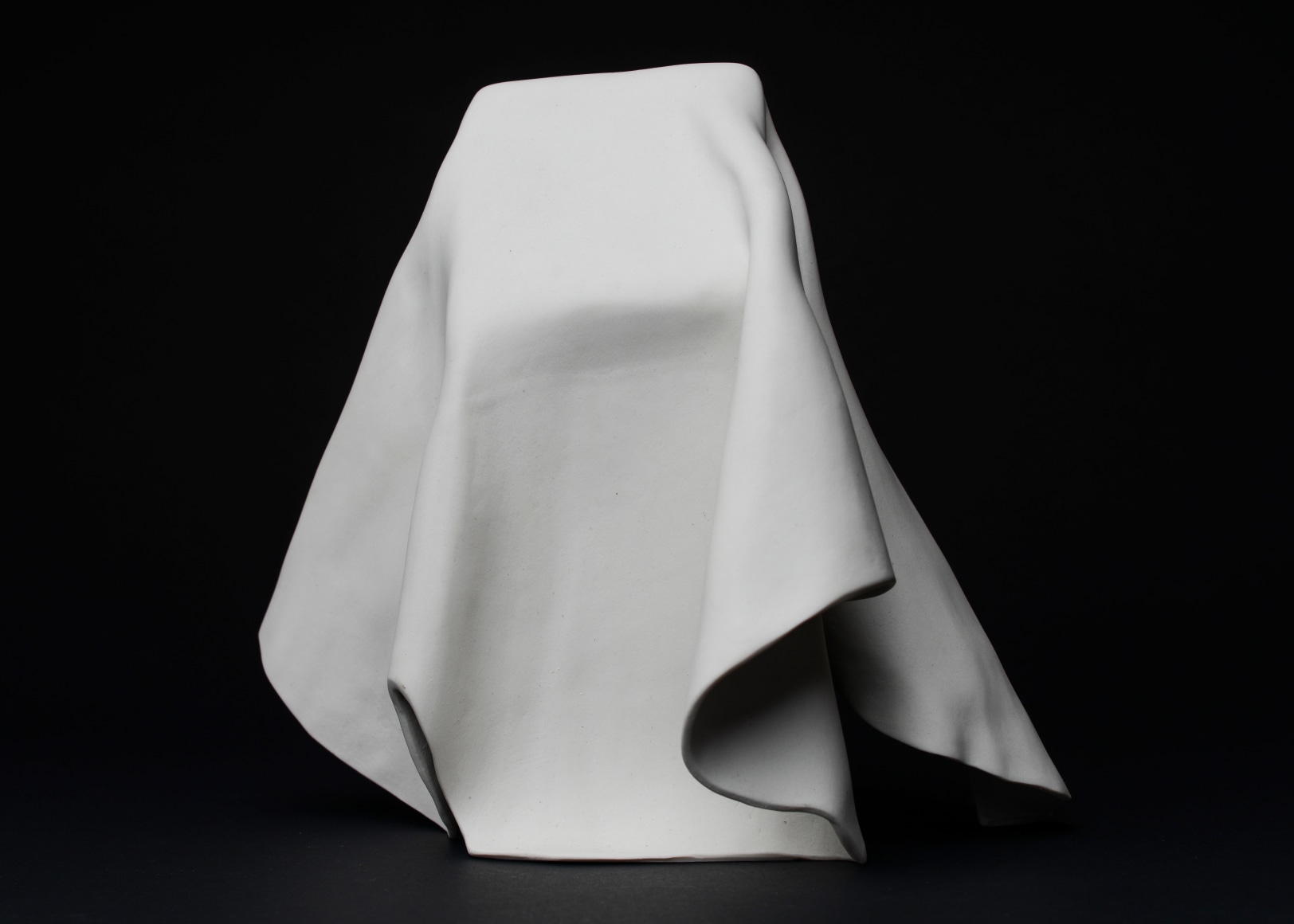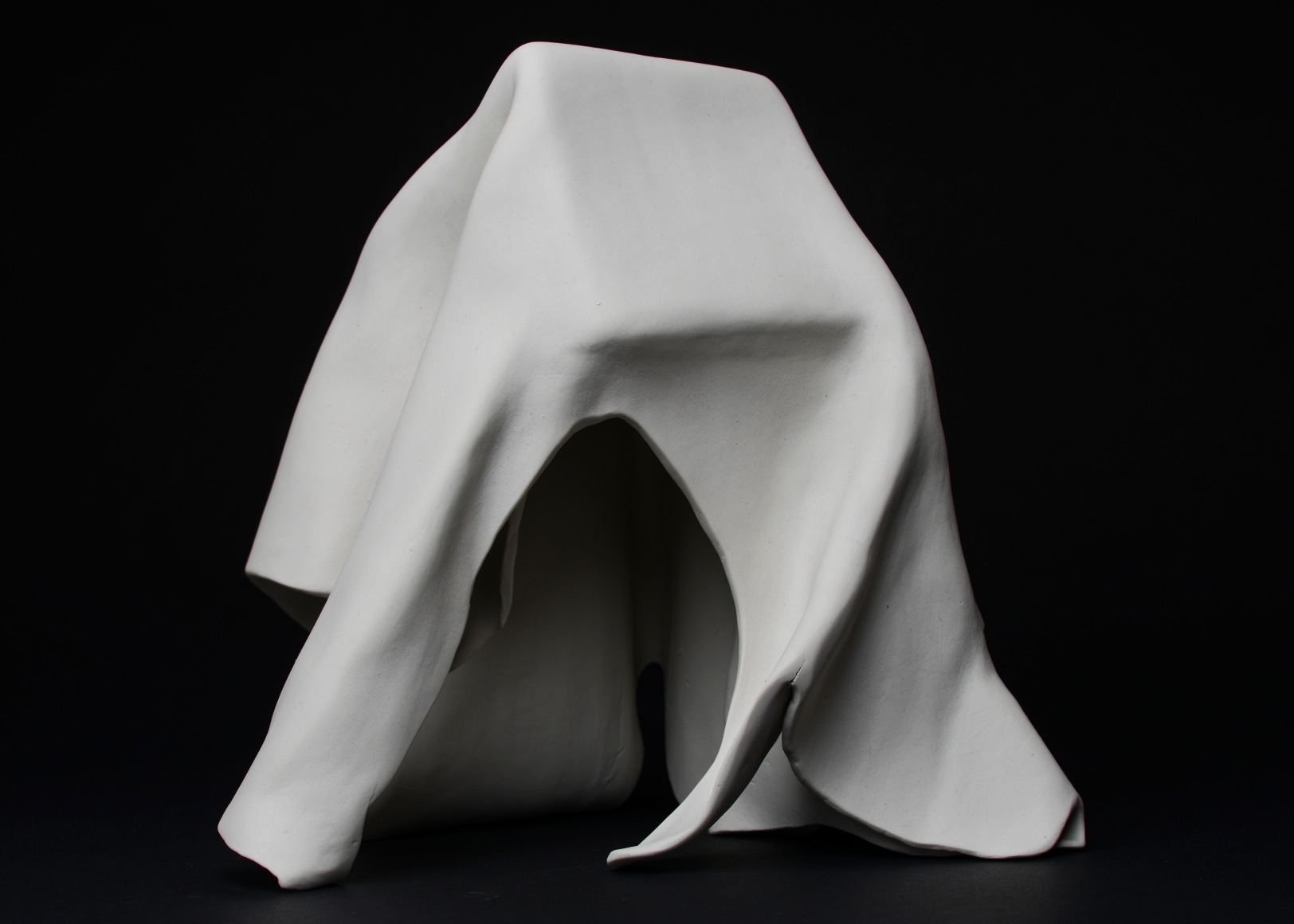 Sculpture series made from thin slabs of fragile wet clay. Once fired, these abstracted forms that are both draped and structural reflect the fragility of the individual and the necessary yet uncertain protection of home and shelter.