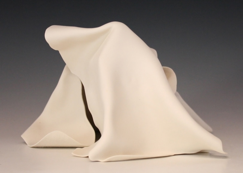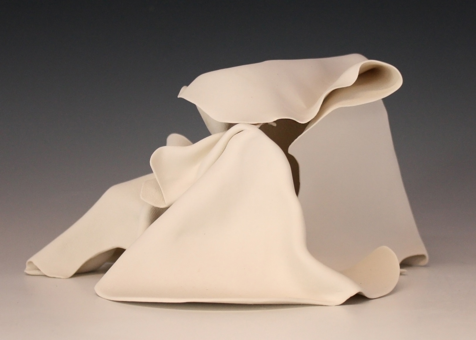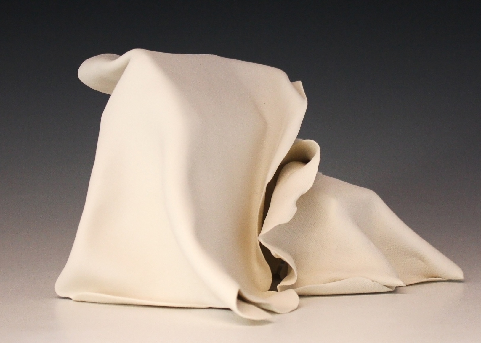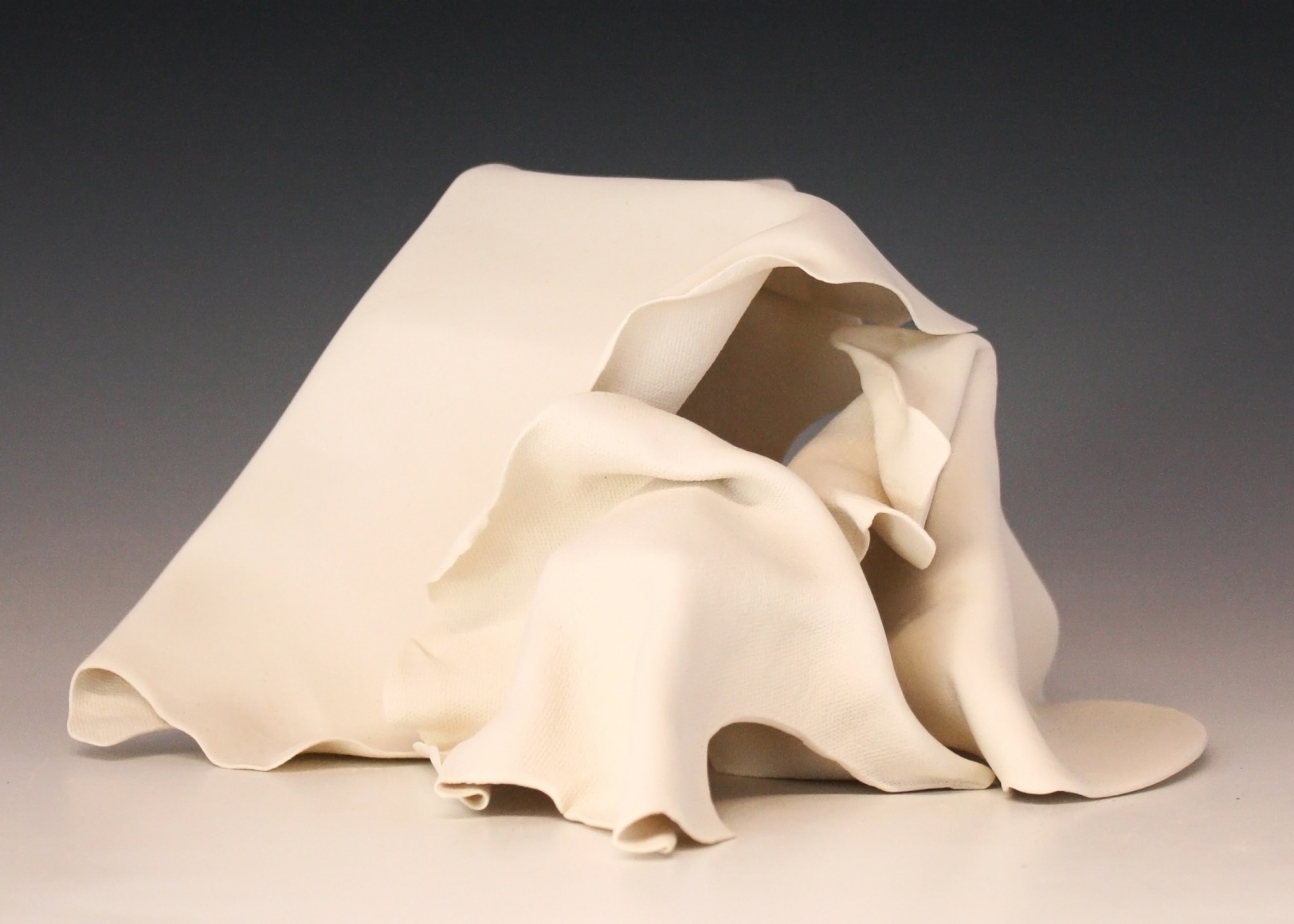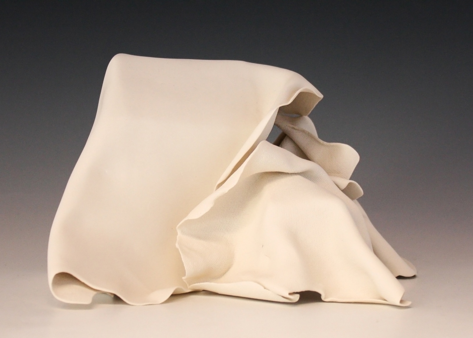 Sculpture series made from thin slabs of fragile wet clay. Once fired, these abstracted forms that are both draped and structural reflect the fragility of the individual and the necessary yet uncertain protection of home and shelter.