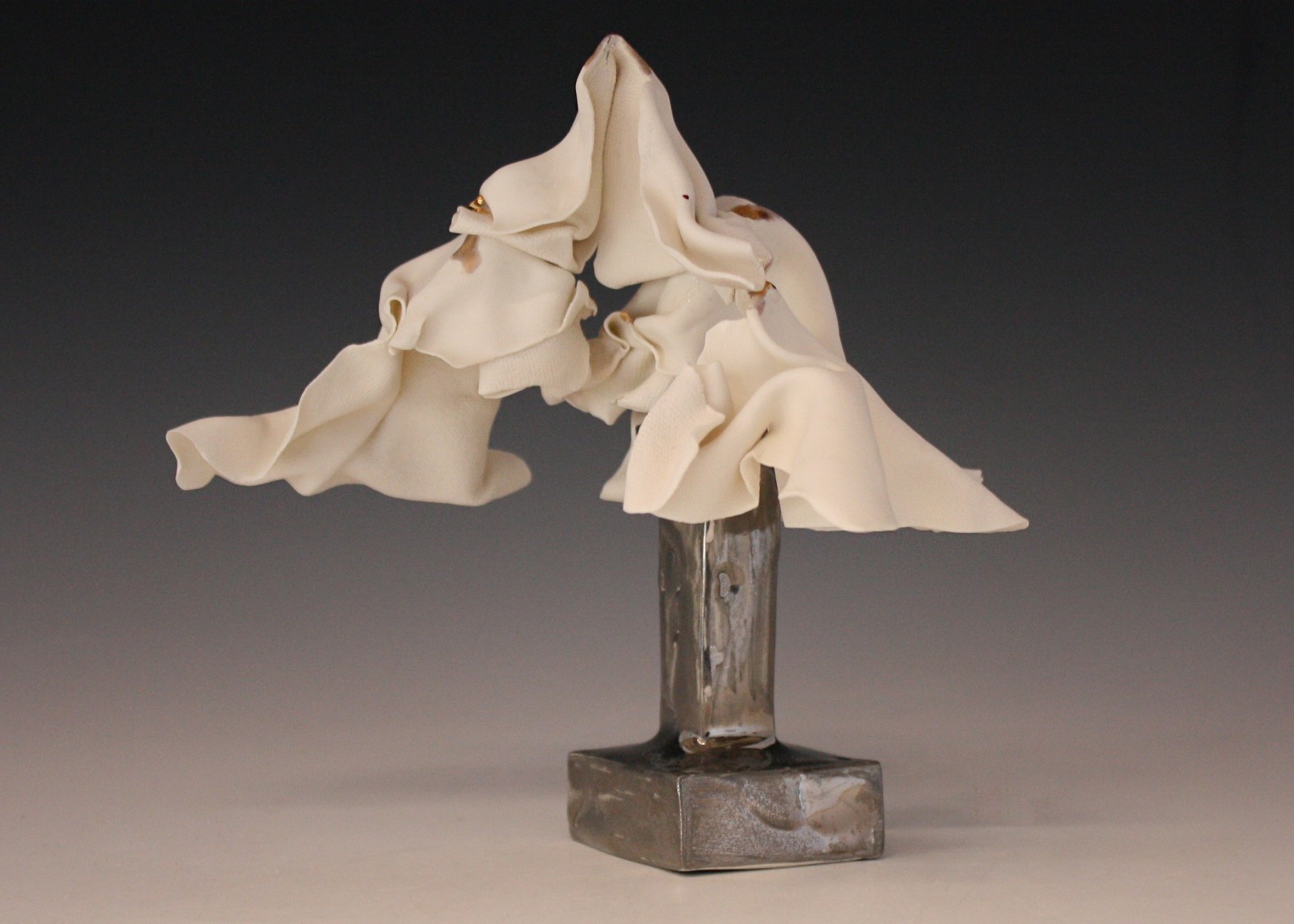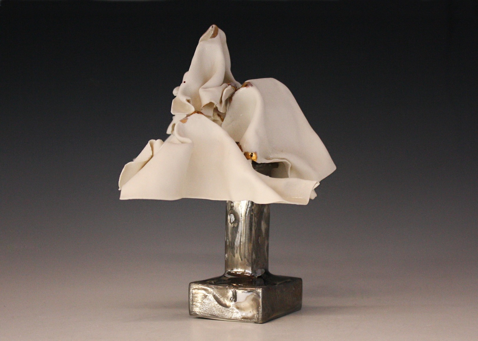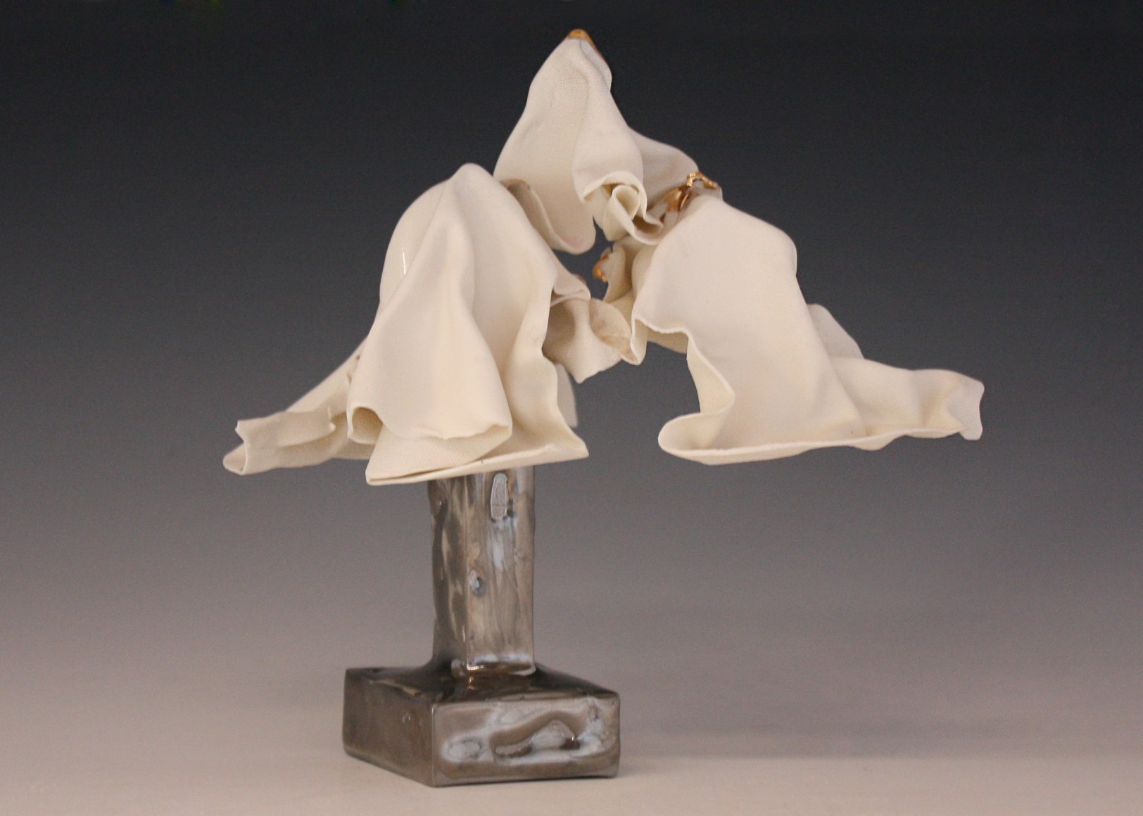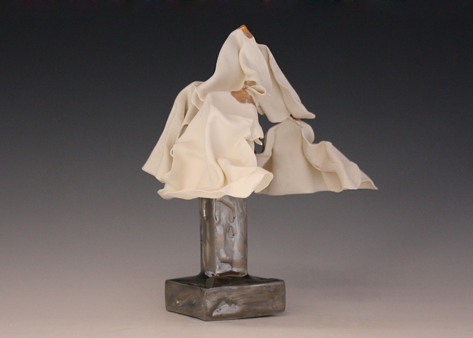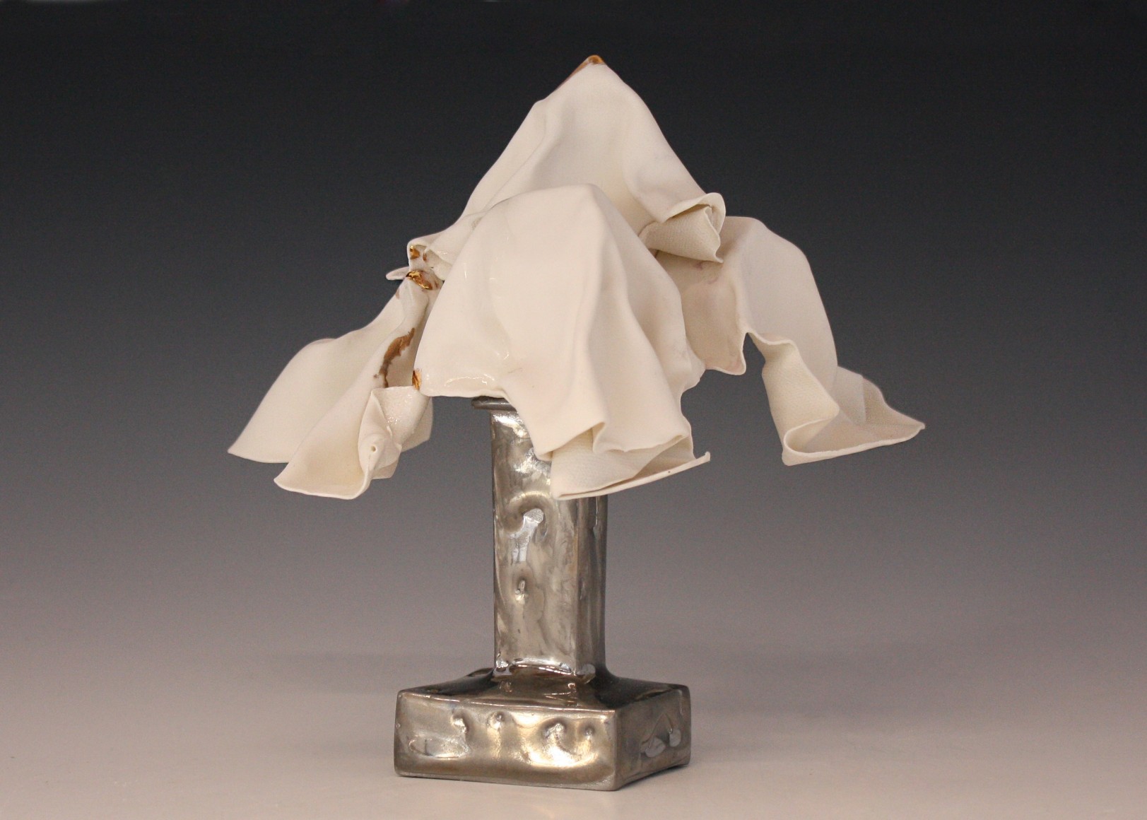 Sculpture series made from thin slabs of fragile wet clay. Once fired, these abstracted forms that are both draped and structural reflect the fragility of the individual and the necessary yet uncertain protection of home and shelter.