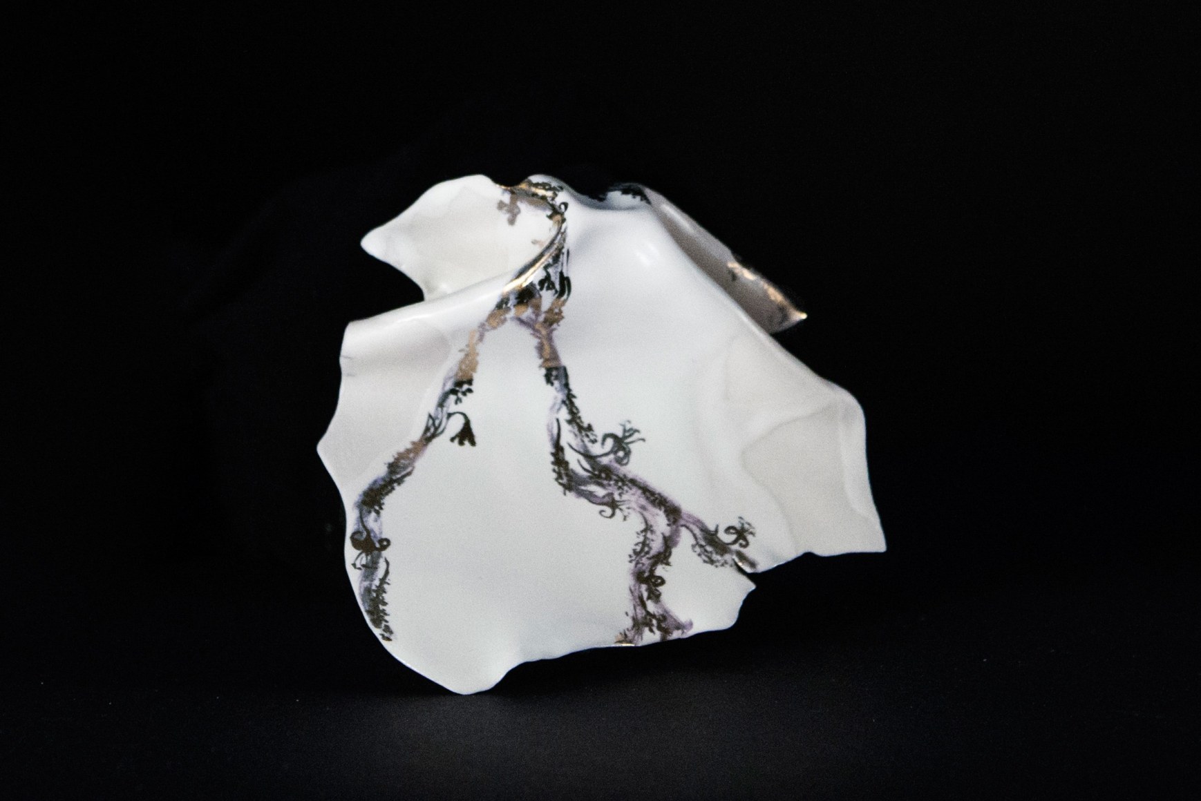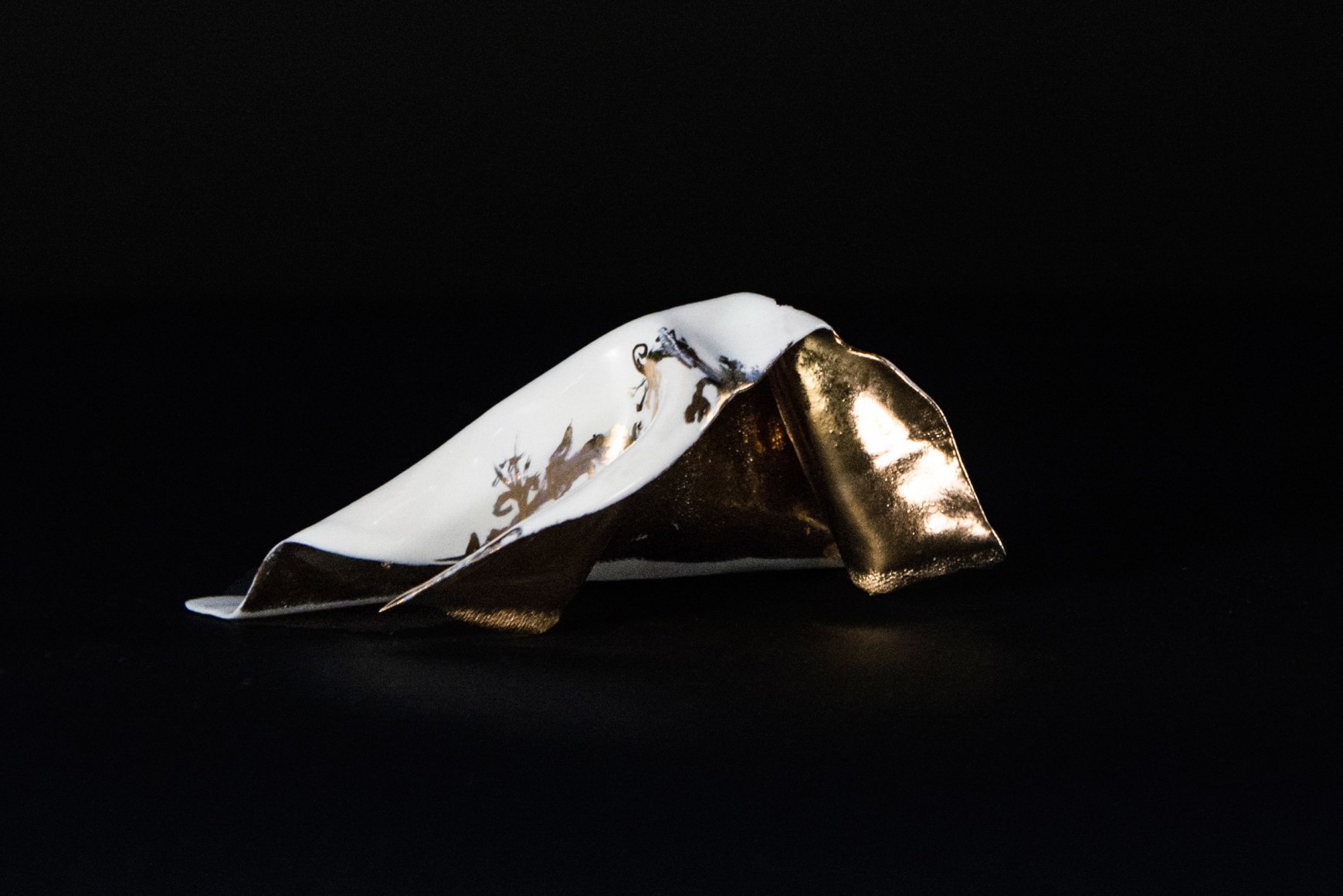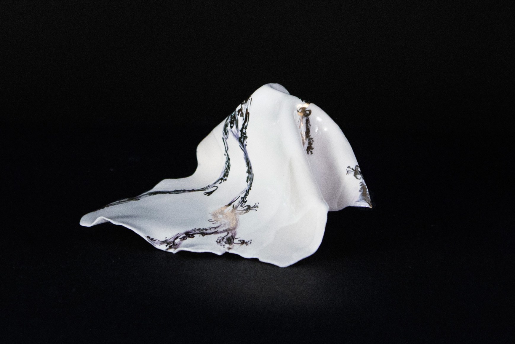 Sculpture series made from thin slabs of fragile wet clay. Once fired, these abstracted forms that are both draped and structural reflect the fragility of the individual and the necessary yet uncertain protection of home and shelter.