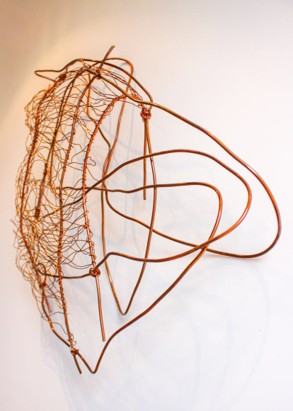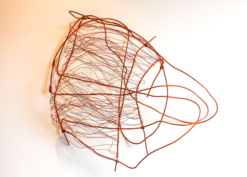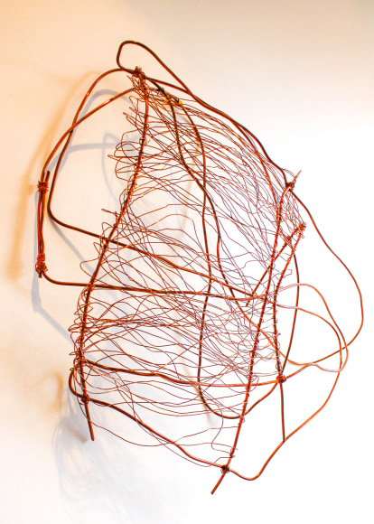 A sculpture series created using the remnants of a previous project, Inside. Originally these pieces were free-standing three dimensional line drawings of houses made with copper wire. The malleability of the wire allowed the houses to be bent and folded (melted) into the wall pieces you see here. Now unrecognizable as houses, these wall sculptures explore concepts of changeability and the fragility of the built environment.