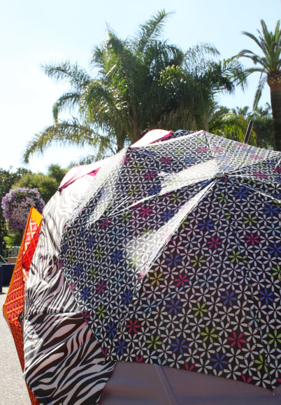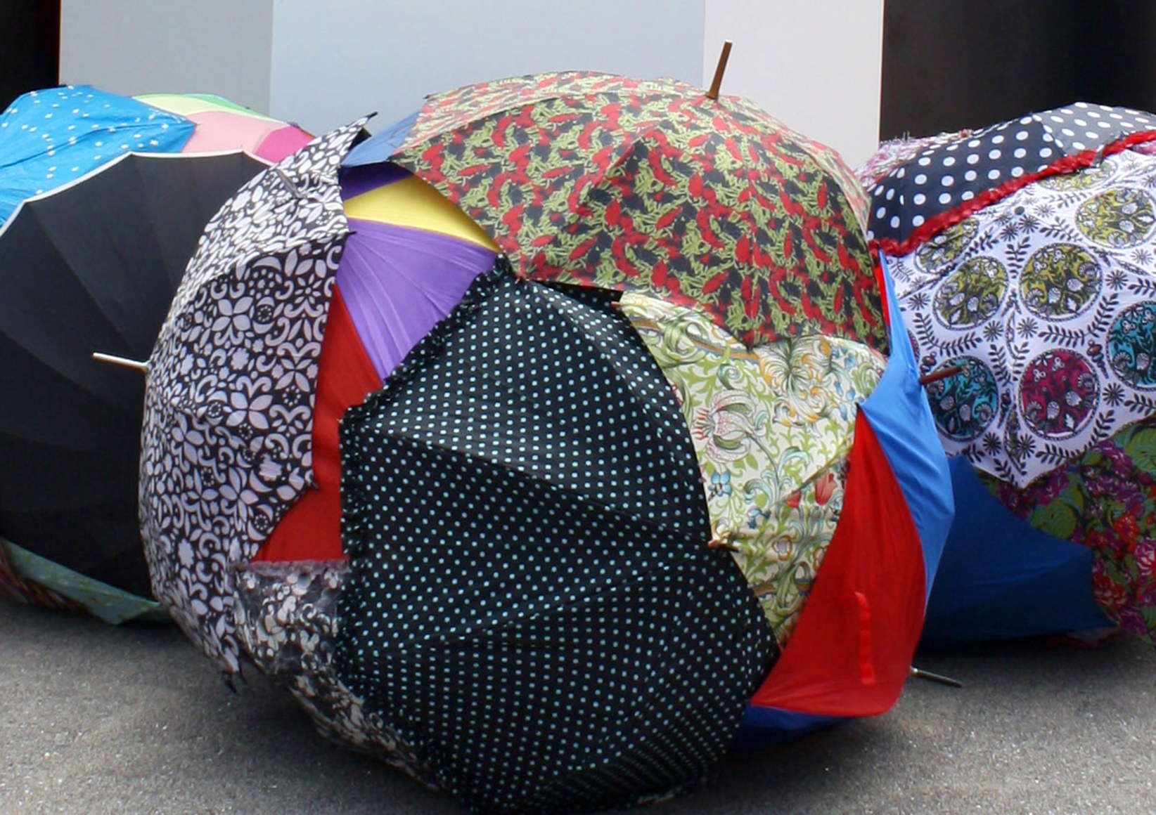The third iteration of the “Rain Cloud” series, lost and found umbrellas were on display in small cloud clusters outside of the exhibition tent, as well as scattered clusters inside the space. Along with the themes of reuse, weather, community and shelter, this work explores the idea of growth and draws from the inspiration of plant life.