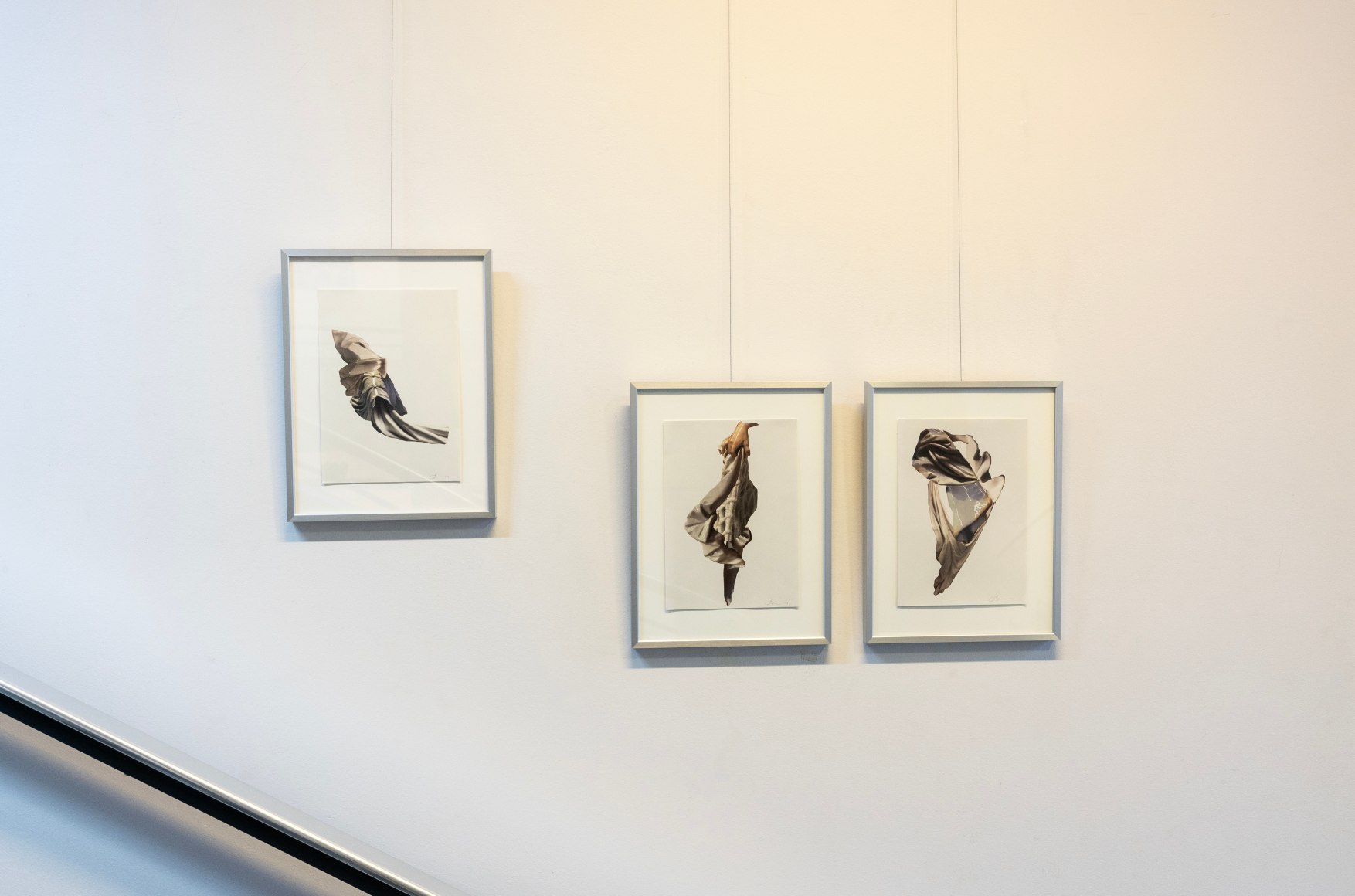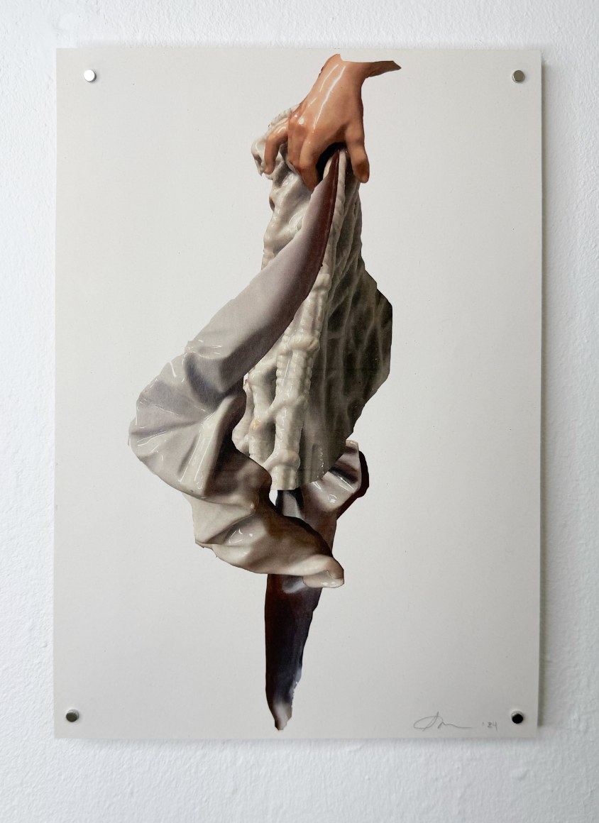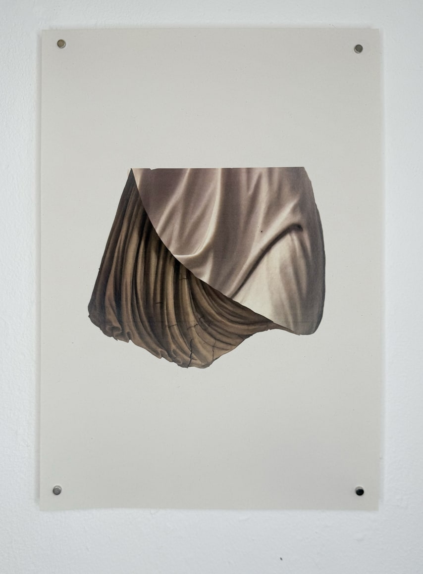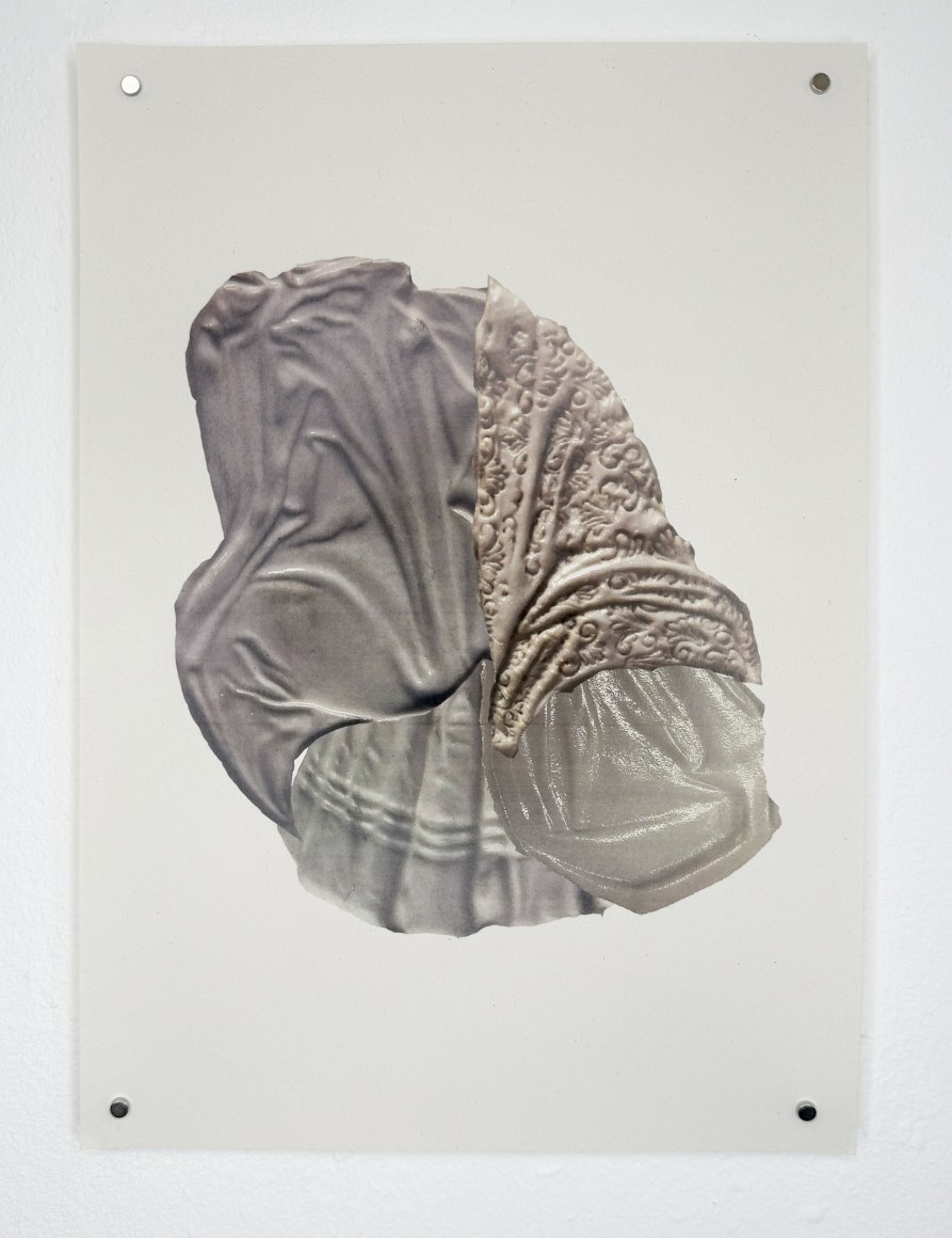 In the autumn of 2024, Stephanie Imbeau undertook an artist residency and presented an exhibition at Kunstverein Meißen. During this period, she engaged deeply with the legacy of Meissen porcelain, conducting research in the archives of the Meissen Porcelain Foundation with their generous support. Imbeau was particularly drawn to the meticulous depictions of flowing fabrics and drapery found throughout centuries of porcelain production. These visual motifs became the foundation for her Refoldings series, which isolates and reinterprets sections of fabric folds documented during her exploration of the Foundation’s historic works depot.