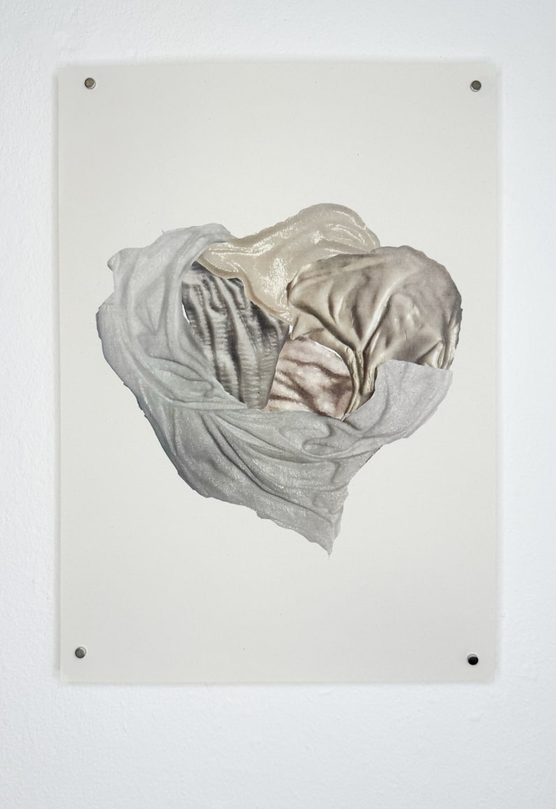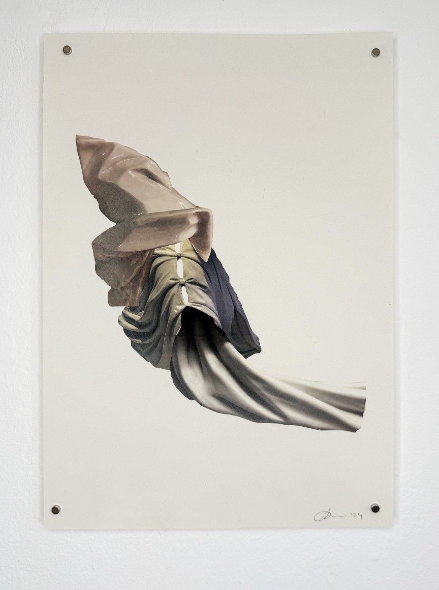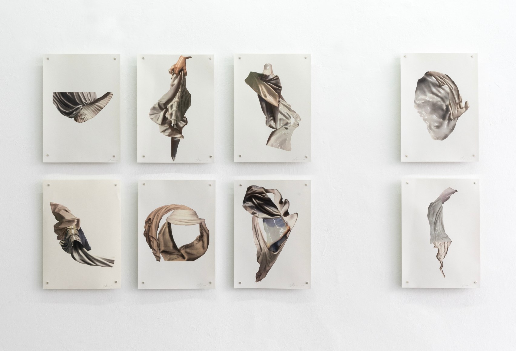 In the autumn of 2024, Stephanie Imbeau undertook an artist residency and presented an exhibition at Kunstverein Meißen. During this period, she engaged deeply with the legacy of Meissen porcelain, conducting research in the archives of the Meissen Porcelain Foundation with their generous support. Imbeau was particularly drawn to the meticulous depictions of flowing fabrics and drapery found throughout centuries of porcelain production. These visual motifs became the foundation for her Refoldings series, which isolates and reinterprets sections of fabric folds documented during her exploration of the Foundation’s historic works depot.